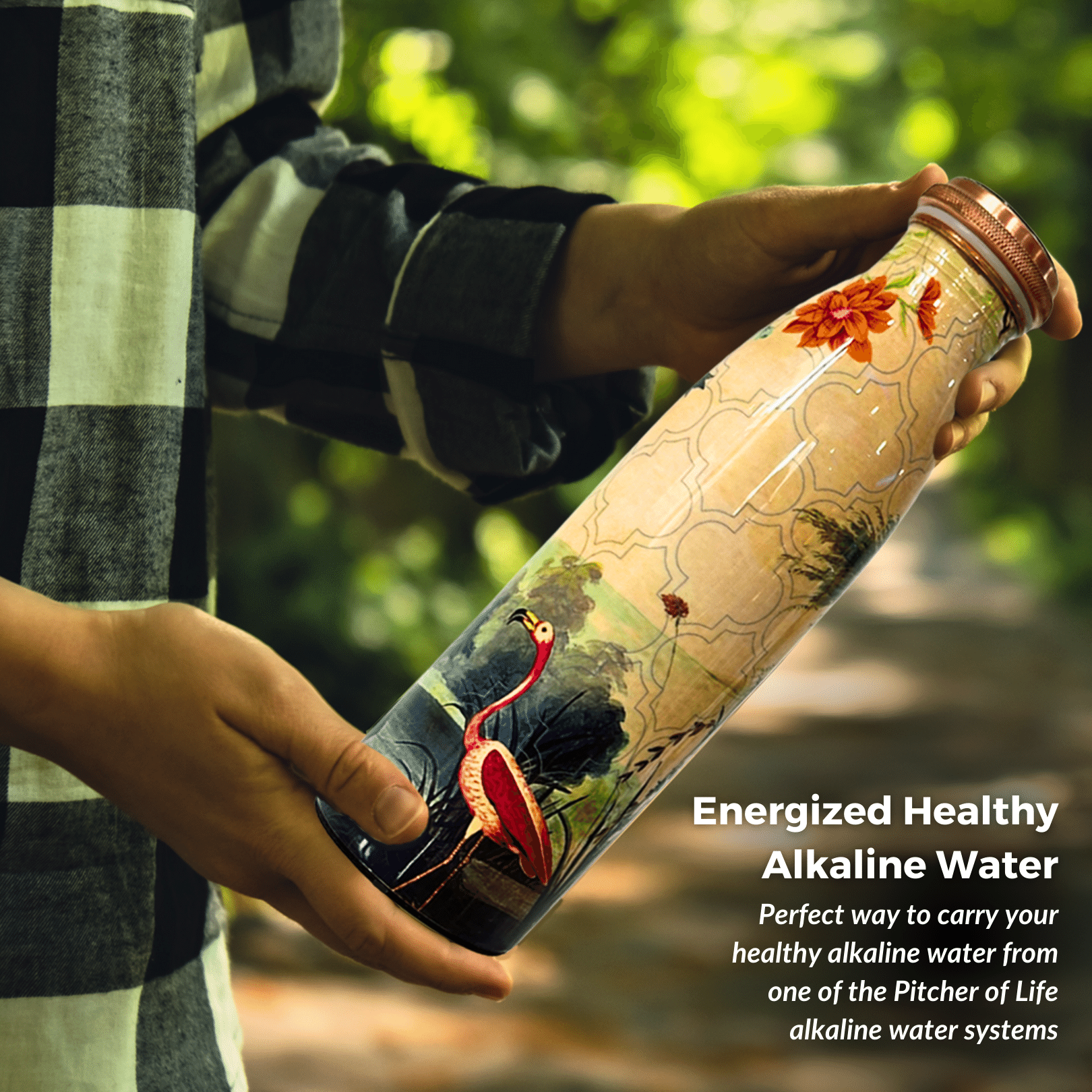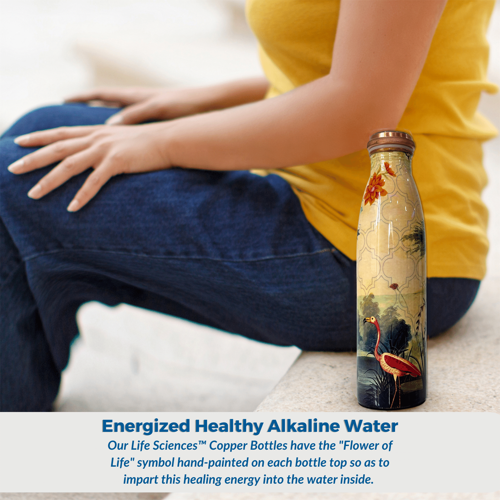 - Energized Health Water - Our Life Sciences™ Copper Bottles have the "Flower of Life" symbol hand-painted on each bottle top so as to impart this healing energy into the water inside. This sacred geometry pattern has been revered by many cultures for centuries. It represents the interconnectedness of all living things and the unity of the universe. This powerful symbol has been known to have a transformative effect on the energy of its surroundings, including water.
