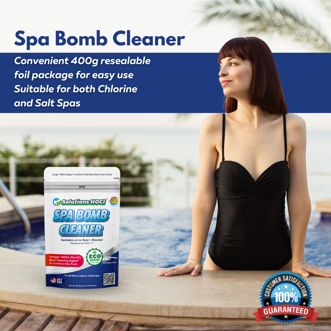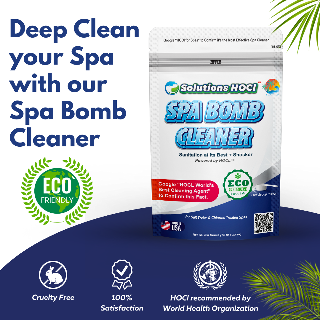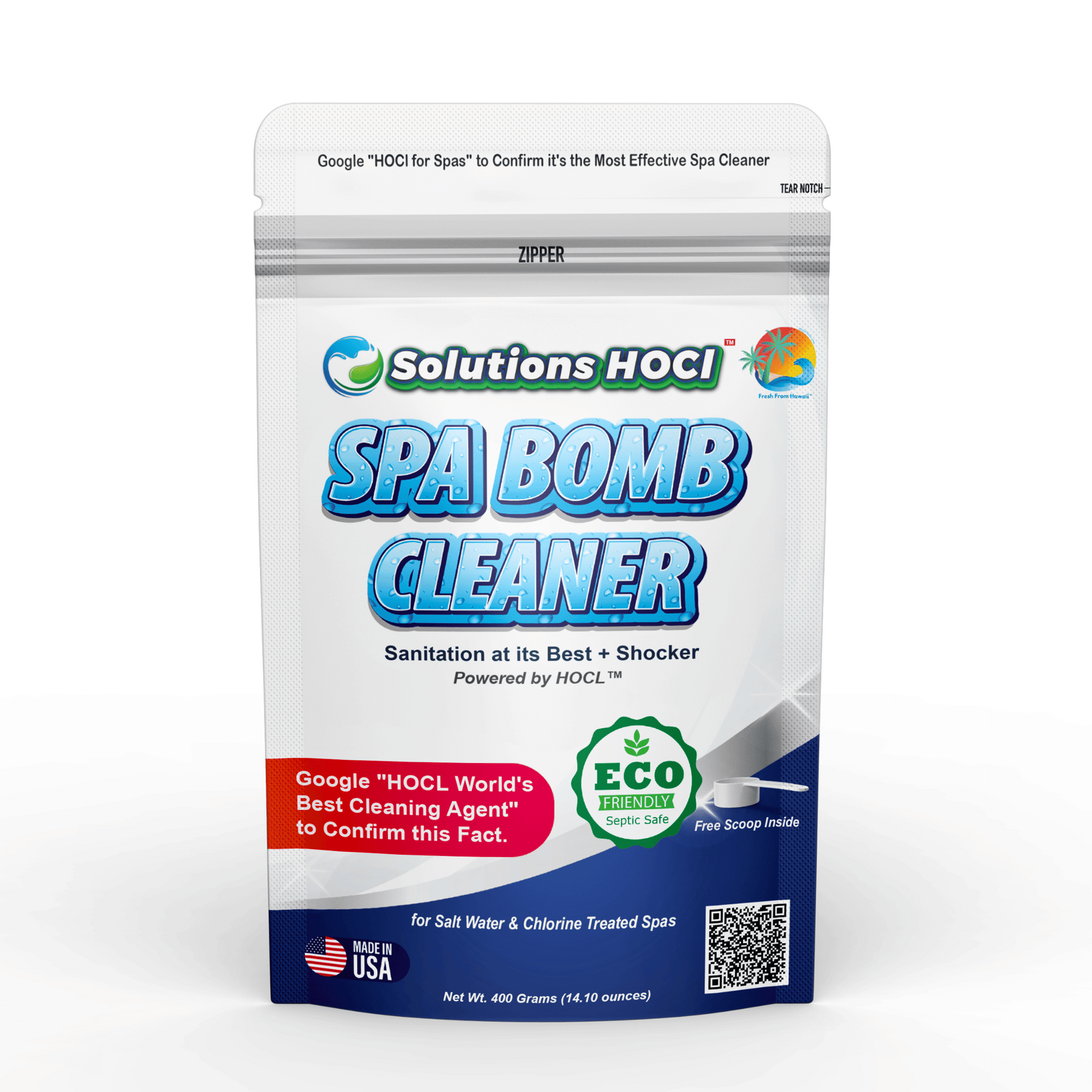 - Does Spa Bomb neutralize “Cloudy Spa Water”? Google “Does HOCl combat cloudy water” to Confirm the Fact that Spa Bomb is an effective Spa Cleaner