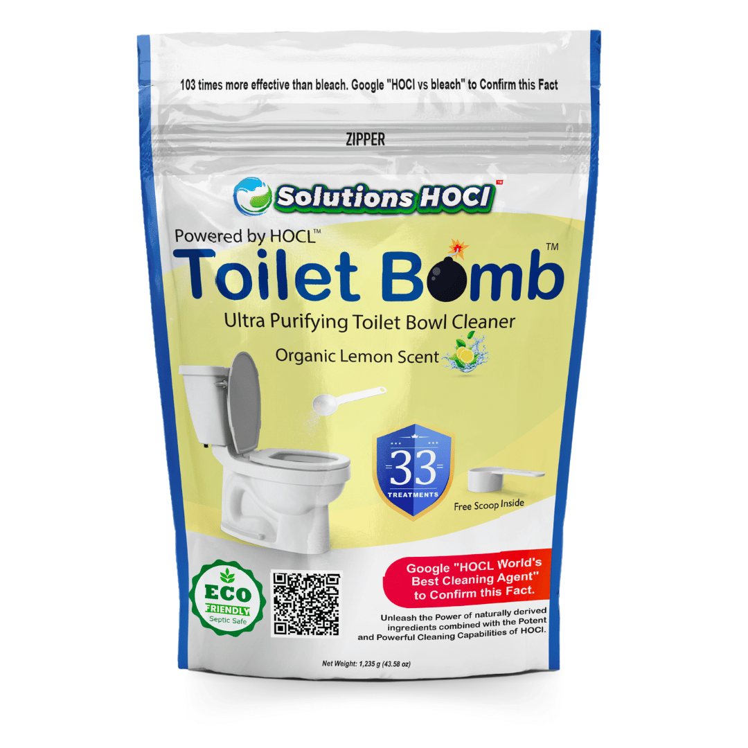 - HOCl Powder: A key ingredient that tackles tough stains, ensuring your toilet bowl is impeccably clean. 100% Guaranteed to remove all bacteria, mold, algae, and mildew stains and odors.